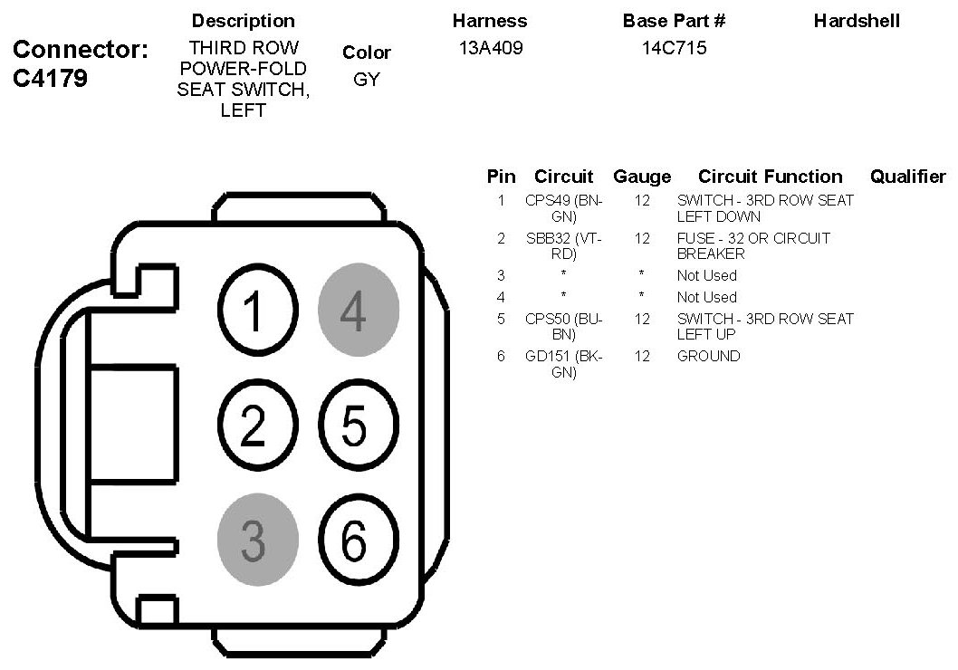 Third Row Power-Fold Seat Switch, Left