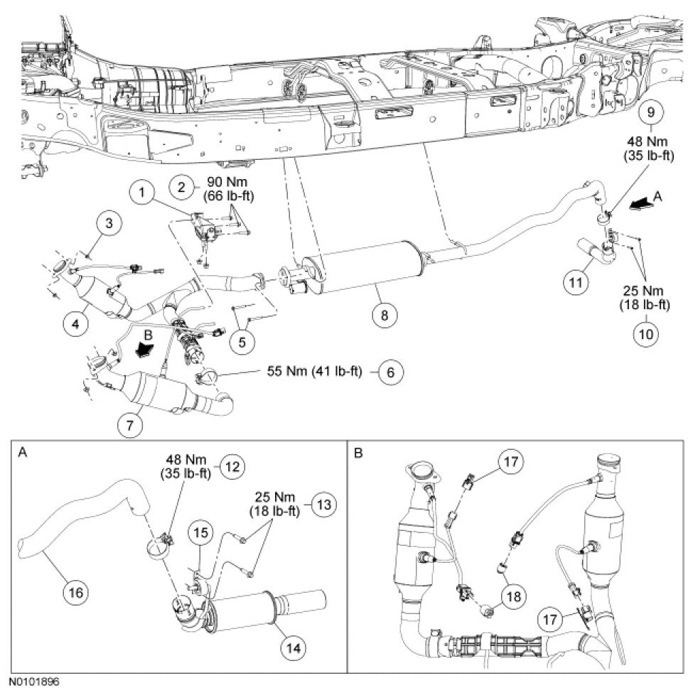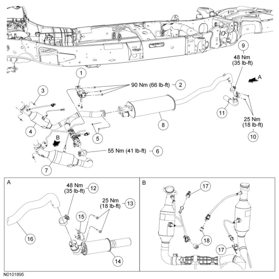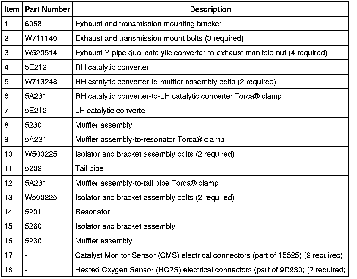 Exhaust System - Exploded ViewExpedition and NavigatorNOTE: Rear Wheel Drive (RWD) shown, Four-Wheel Drive (4WD) similar.