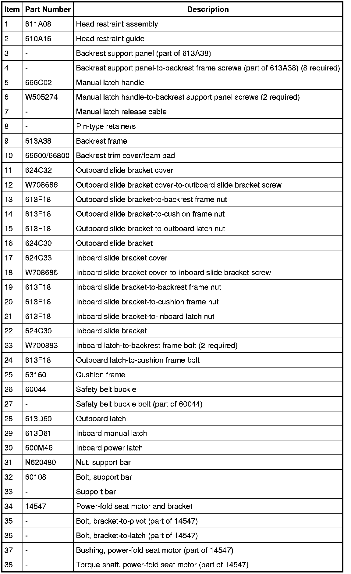 Seat - Exploded View, Third Row