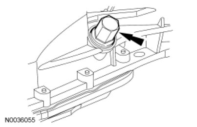 NOTICE: The transmission fluid fill plug is located near the exhaust system. The exhaust will be extremely hot during this procedure.