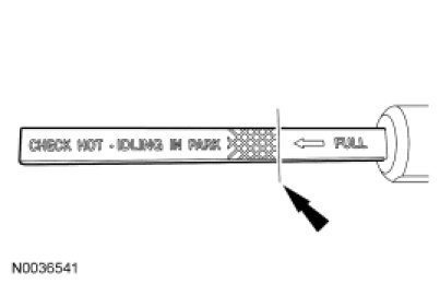 NOTE: If the vehicle has been operated for an extended period at high highway speeds, in city traffic, during hot weather or while pulling a trailer, the transmission fluid must cool down to obtain an accurate reading.