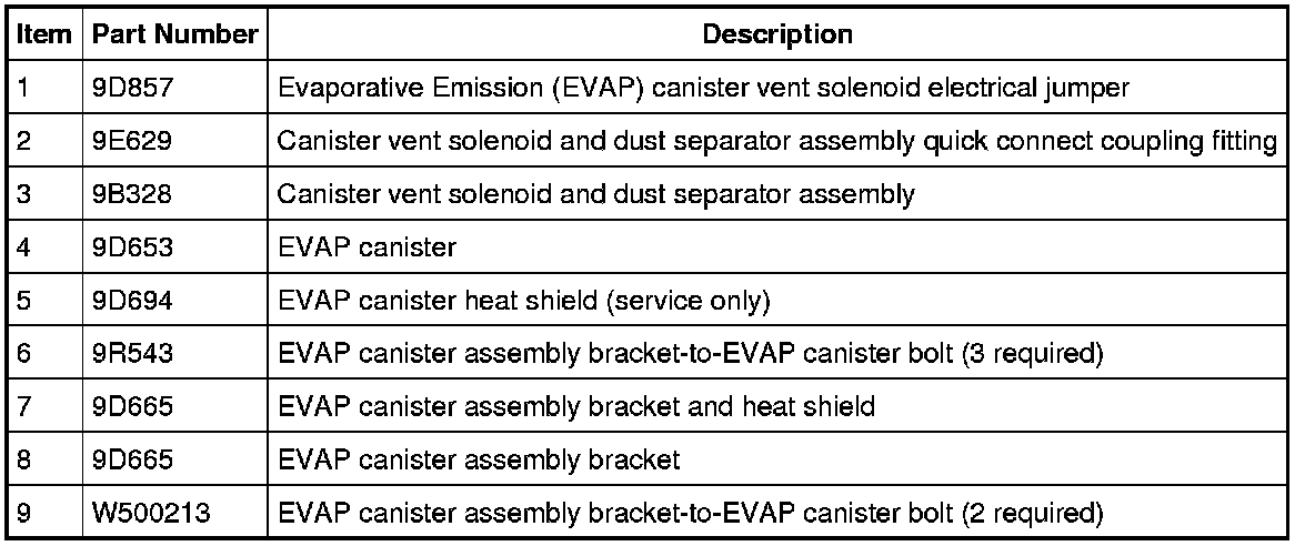 Evaporative Emission (EVAP) System Components - Exploded ViewEvaporative Emission (EVAP) Canister AssemblyNOTE: 106L (28 gal) fuel tank vapor tubes shown, 127L (33.5 gal) similar.