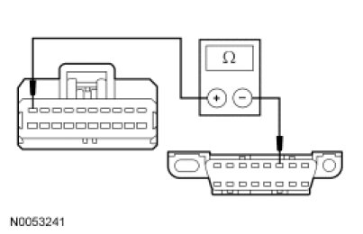 - Measure the resistance between the 4X4 control module C281a-9, circuit VDB05 (WH), harness side and the DLC