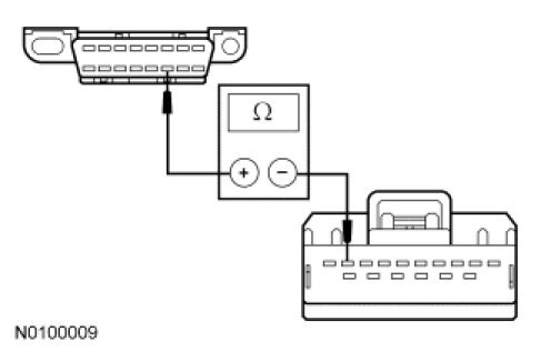 - Measure the resistance between the Data Link Connector (DLC) C251-6, circuit VDB04 (WH/BU), harness side and the VDM C2131a-10, circuit VDB04 (WH/BU), harness side.