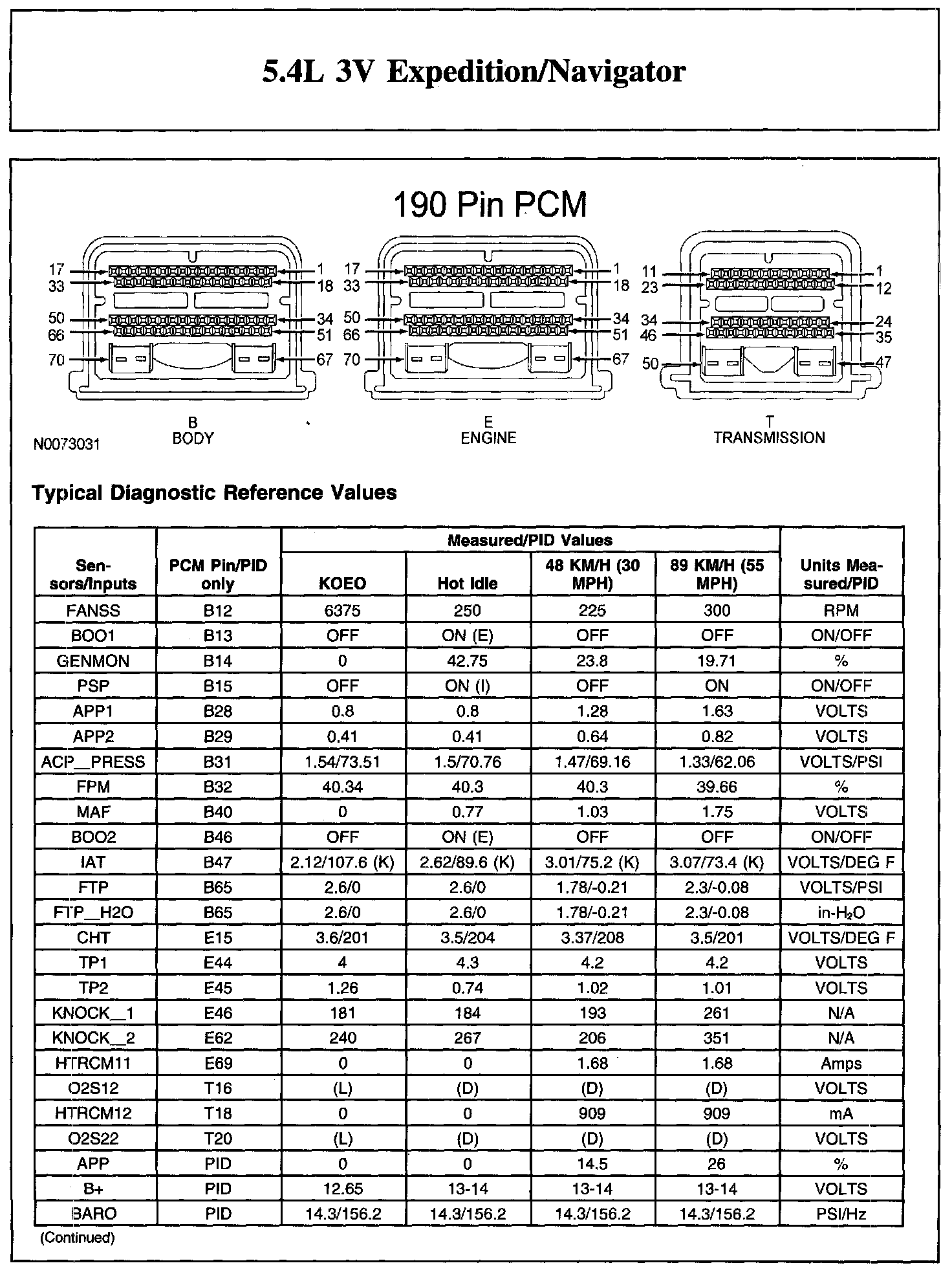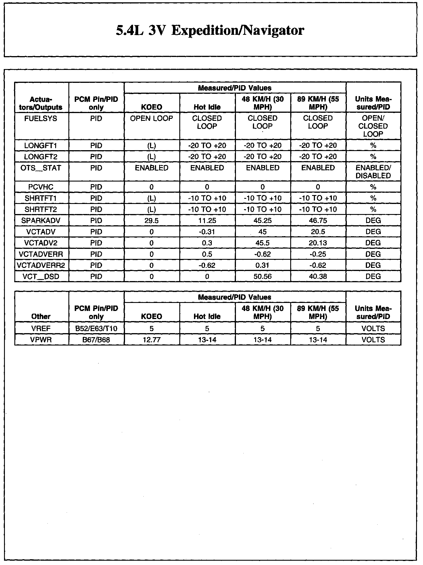 The Typical Diagnostic Reference Value Charts do not display fault parameter identifications (PIDs). These are PIDs which indicate a hard fault with the circuit. They display a value of YES or NO and are PIDs ending with the letter F.