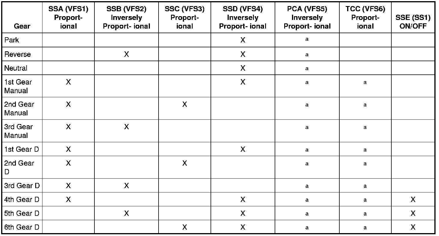 Clutch Application Chart Clutch Application Charta Transmission control module (TCM) controlled