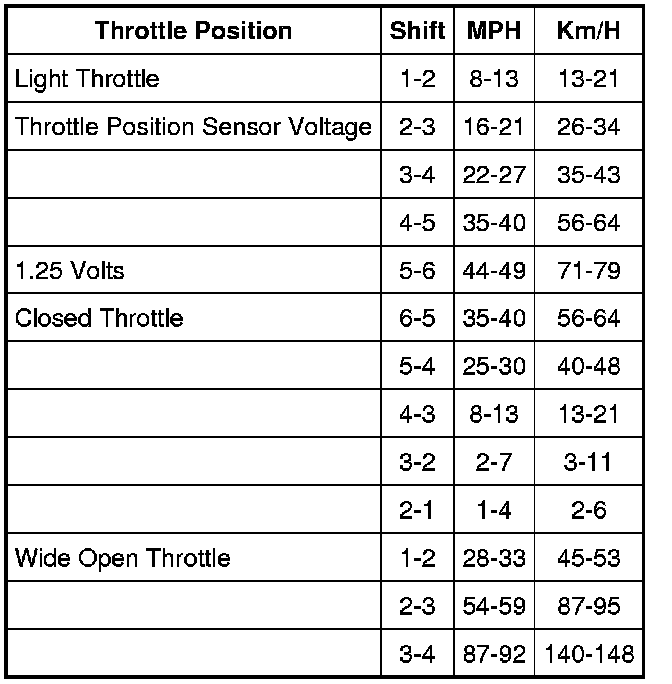Shift SpeedsNOTE: Shift speed ranges are approximate for all applications. For specific applications (engine, axle ratio, tire size and application), refer to the Automatic Transmission Specification booklet. Always drive the vehicle in a safe manner according to driving conditions and obey all traffic laws.