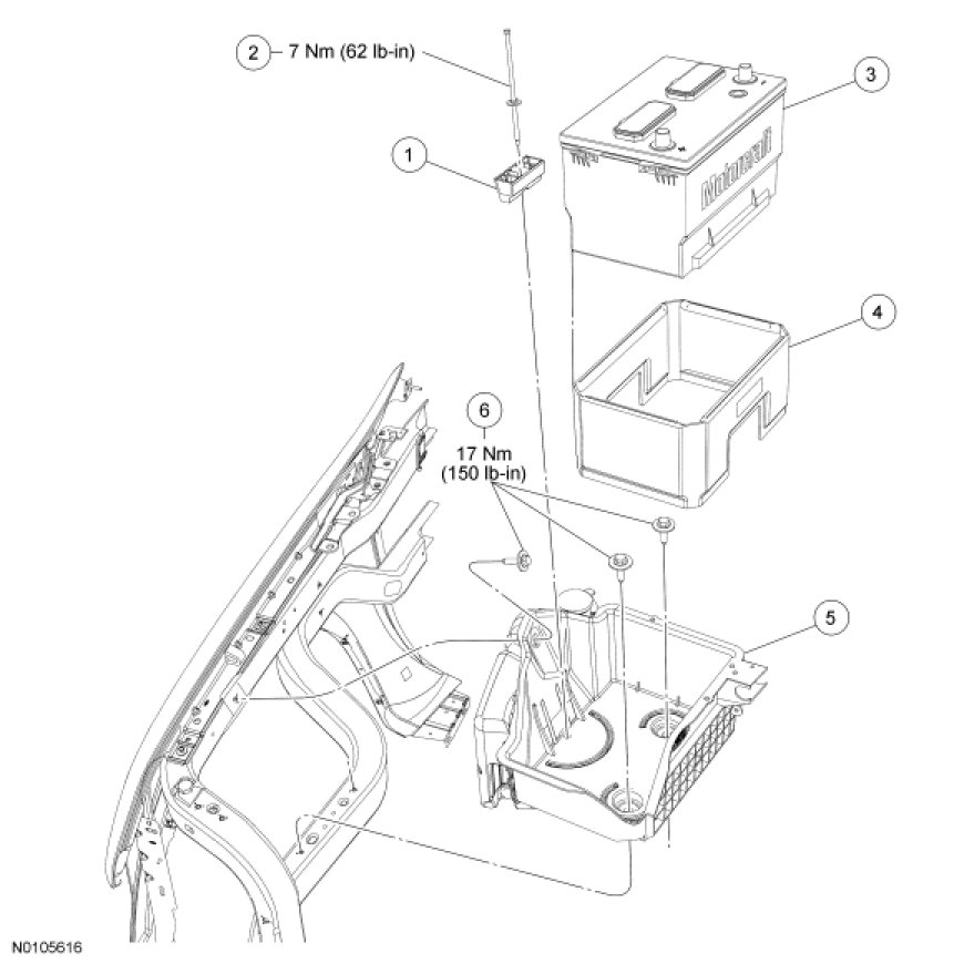 Battery and Battery Tray - Exploded View