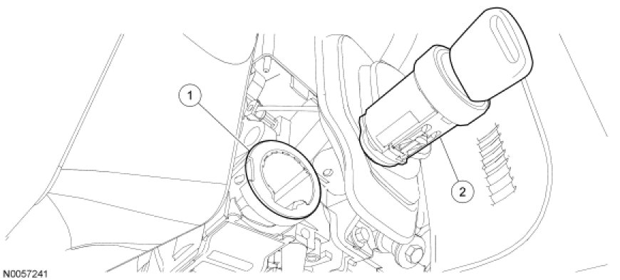 3. If a new lock cylinder with keys is replaced, the new PATS keys must be programmed. For additional information, refer to Integrated Keyhead Transmitter (IKT) Key Programming Using Diagnostic Equipment in Antitheft and Alarm Systems. Using Diagnostic Equipment