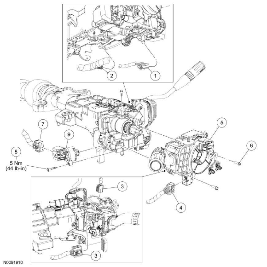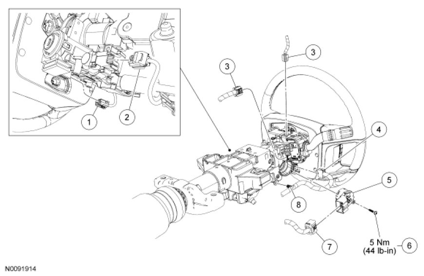 4. Remove the steering wheel. For additional information, refer to Steering Column.