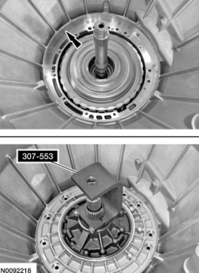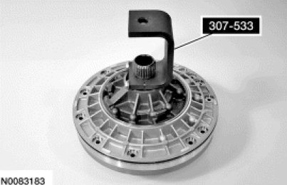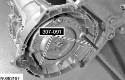 71. Using the Torque Converter Handle 307-091, install the torque converter. Remove the Torque Converter Handle 307-091.