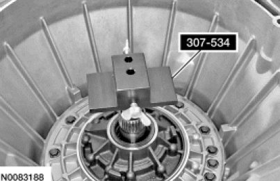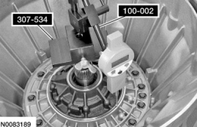 57. Install the Transmission End Play Gauge 307-534 on the input shaft to measure the end play.