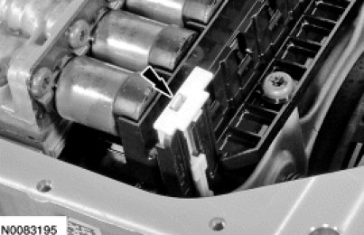 65. NOTICE: Do not touch the electrical connector pins or the exposed solenoid tabs on the Transmission Control Module (TCM). Electrostatic discharge may occur and may cause damage to the mechatronic unit.