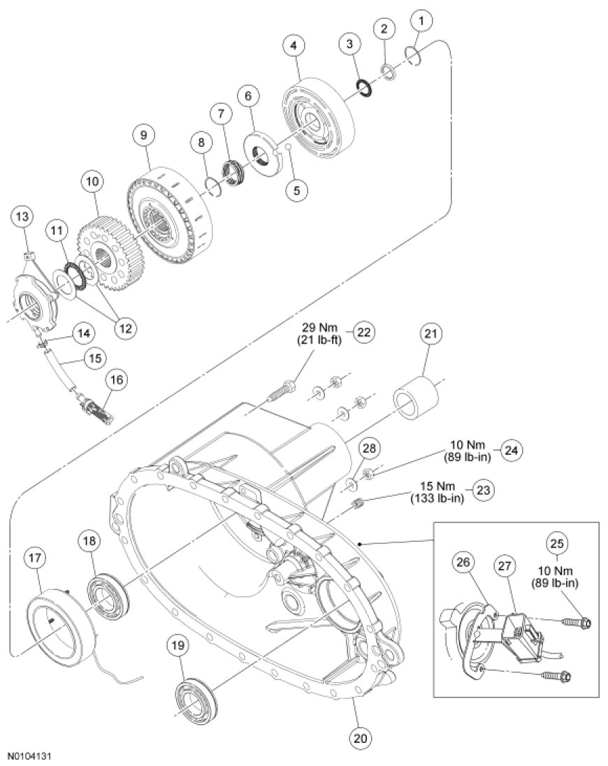 - Tighten to 29 Nm (21 lb-ft).