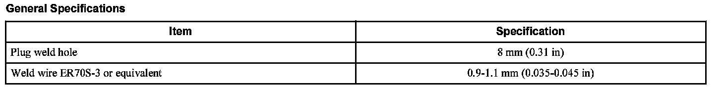 Do not place a new spot weld directly over an original weld location. Plug weld hole should equal 8 mm (0.31 in) diameter.