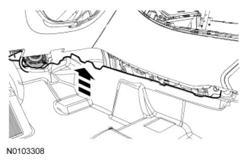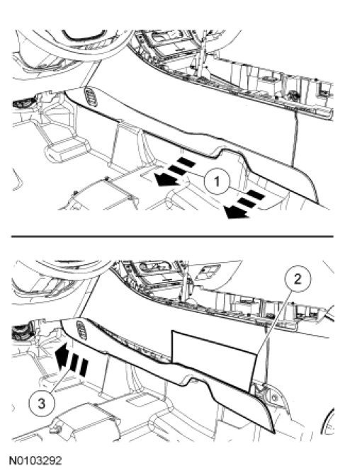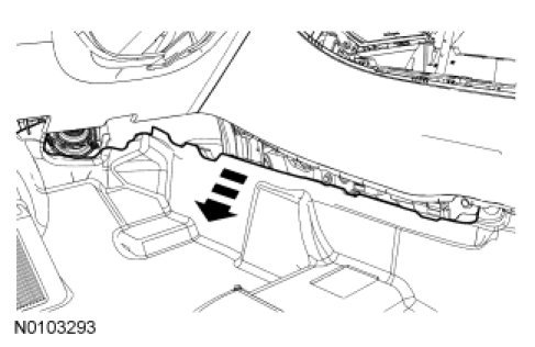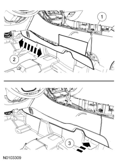 1. Pull the LH center console lower trim panel away from the center console to release the retaining clips.