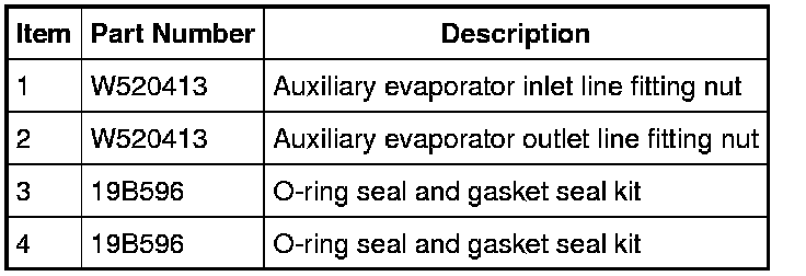4. Remove the auxiliary evaporator outlet and inlet line fitting nuts and position the auxiliary lines aside.