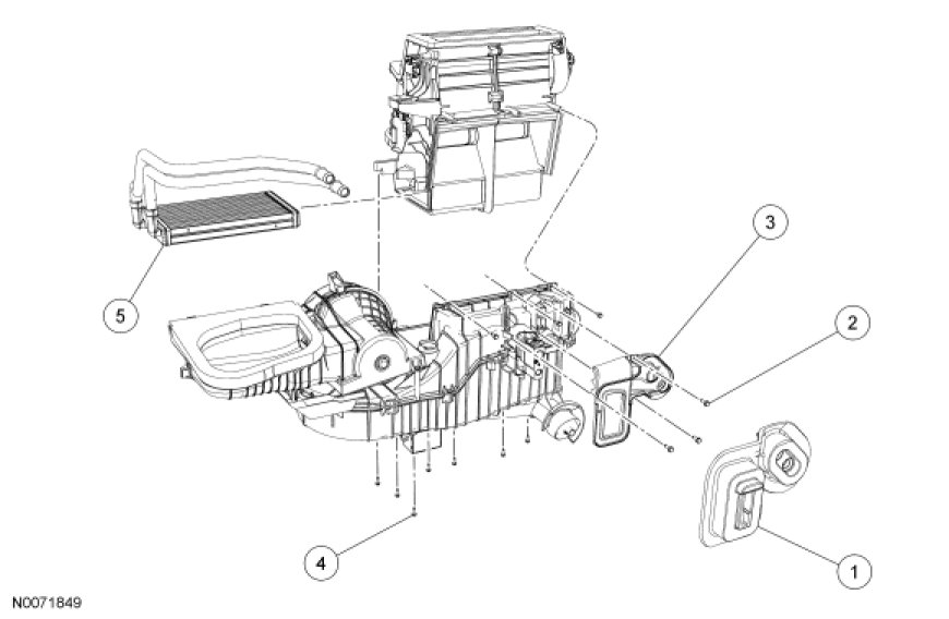 1. Remove the heater core and evaporator core housing. For additional information, refer to Heater Core And Evaporator Core Housing Heater Core And Evaporator Core Housing.