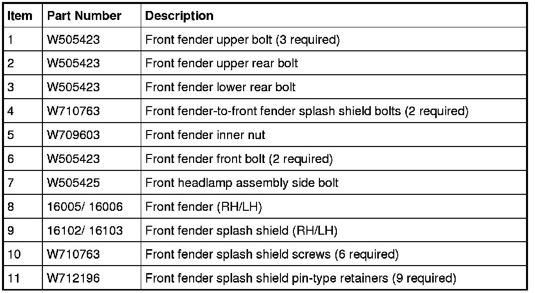 Front End Body Panels - Exploded View