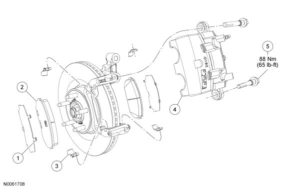 NOTICE: Do not allow the brake caliper to hang from the brake hose or damage to the hose can occur.