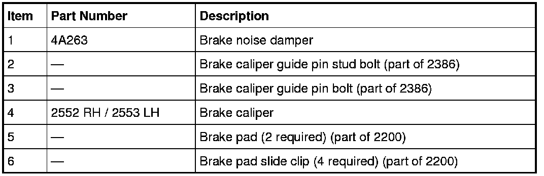Remove and discard the 2 brake pads and spring clips from the brake caliper anchor plate.