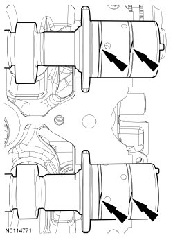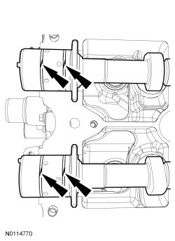 NOTICE: During engine repair procedures, cleanliness is extremely important. Any foreign material, including any material created while cleaning gasket surfaces that enters the oil passages, coolant passages or the oil pan, may cause engine failure.