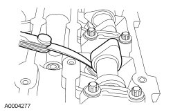 Install the Camshaft Holding Tool onto the flats of the LH camshafts.