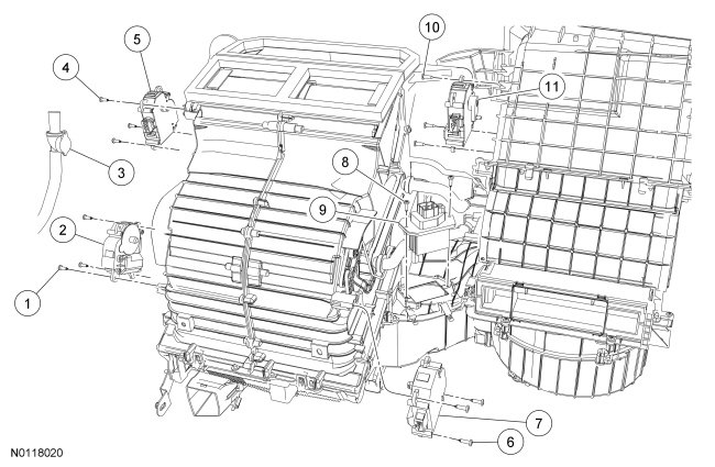 Control Components - Exploded ViewHeater Core and Evaporator Core Housing Control Components 1.