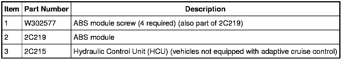 NOTE: On vehicles equipped with adaptive cruise control, the ABS module and Hydraulic Control Unit (HCU) are serviced as an assembly. For additional information, refer to Hydraulic Control Unit (HCU) Service and Repair.