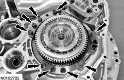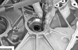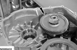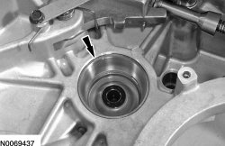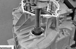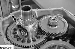 61. NOTICE: If the differential bearing cup is damaged, a new bearing and bearing cup must be installed or excessive noise or transaxle failure may occur.