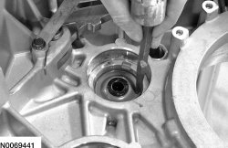 81. Using a suitable tool, remove the halfshaft seal from the torque converter housing.
