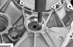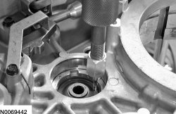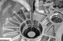 60. Using a suitable tool, remove the halfshaft seal from the transaxle case.