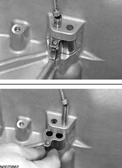 65. Remove the 2 bolts and the park pawl pin retainer.