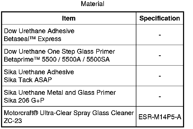 7. NOTE: Be sure to use the same brand and cure-rate products for the urethane adhesive and glass primer. Do not mix different brands of urethane adhesive and glass primer. For additional information, refer to the Material Chart in this procedure.