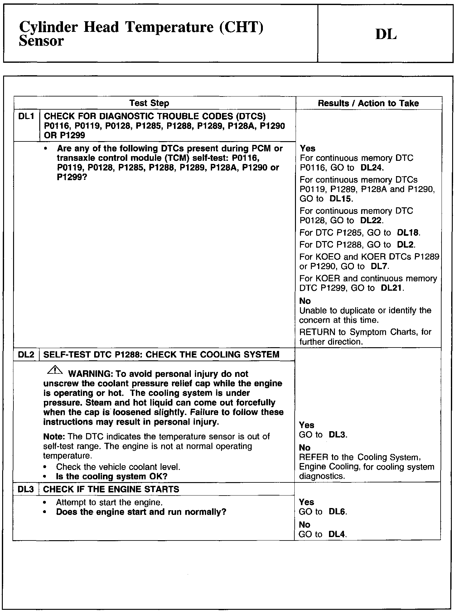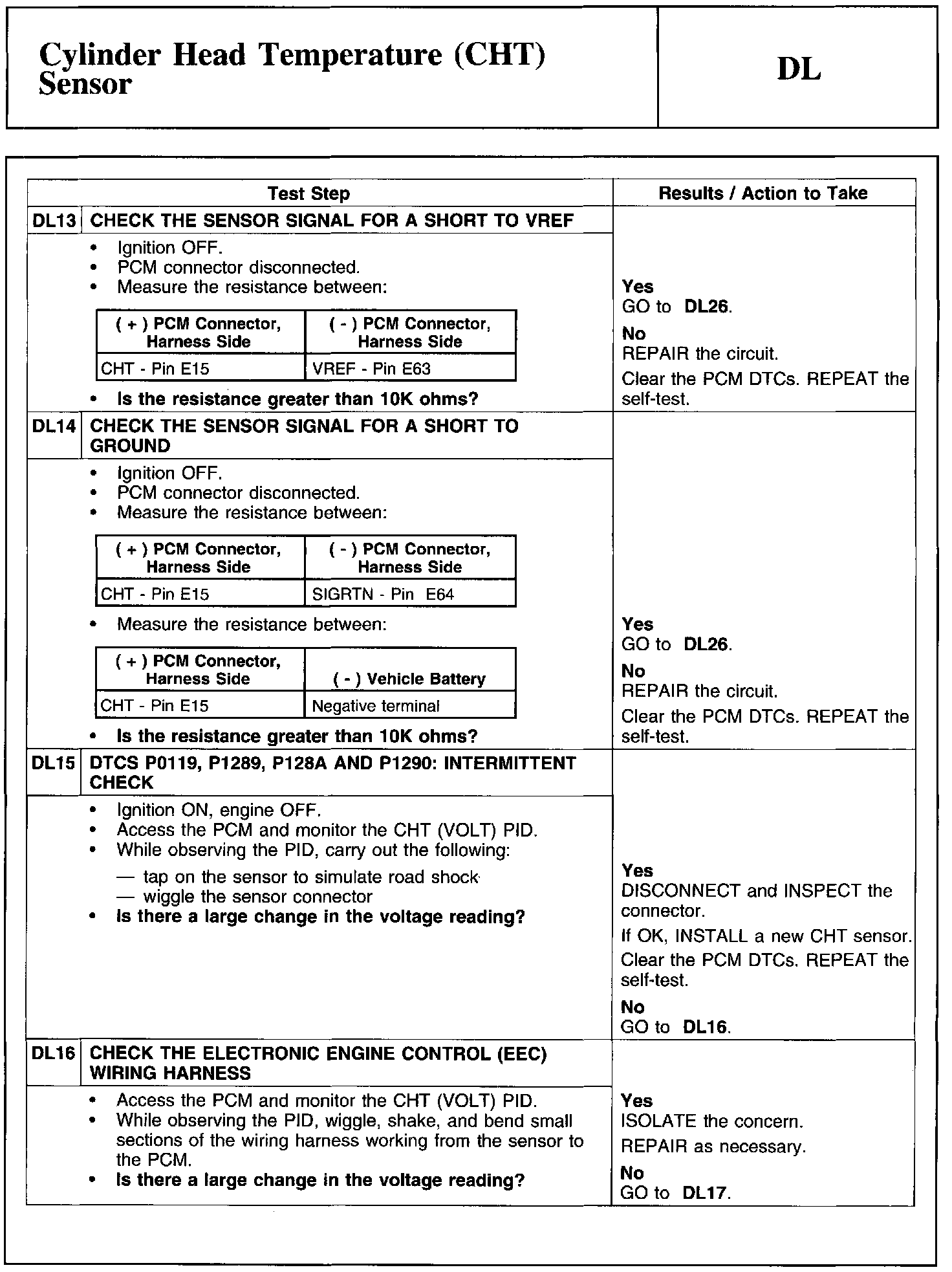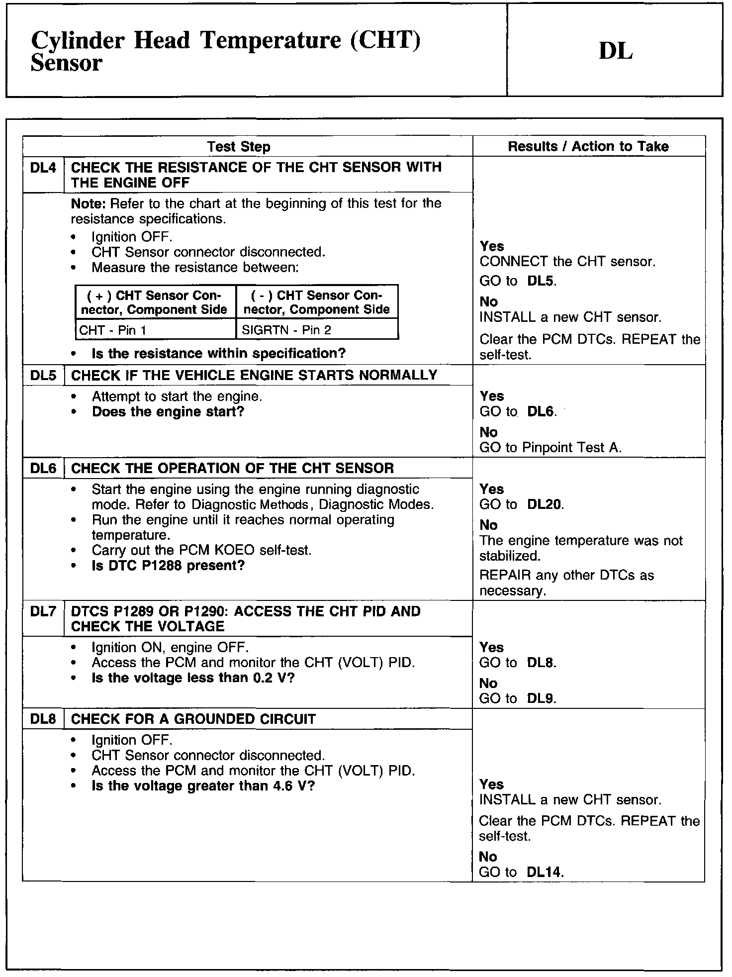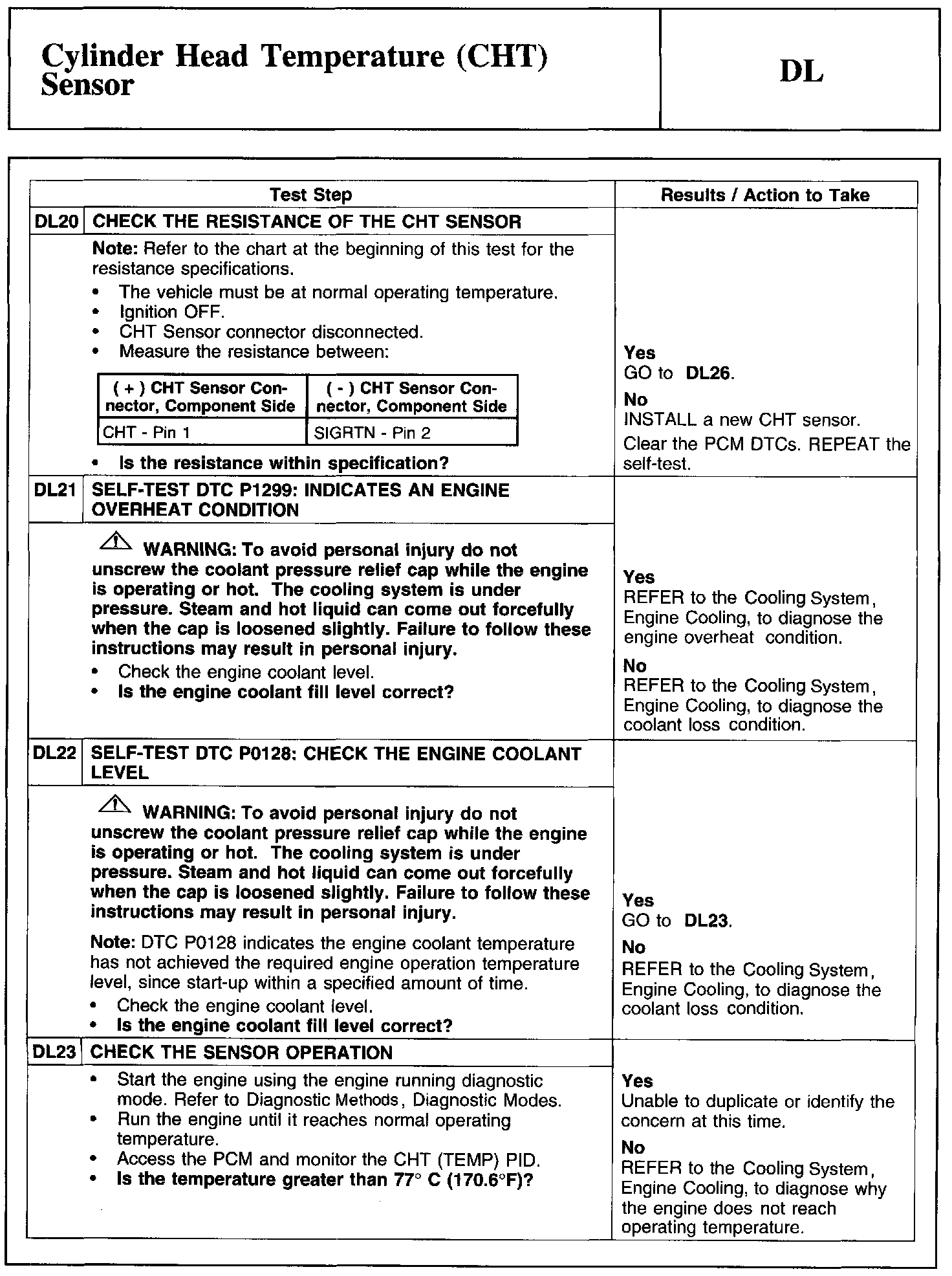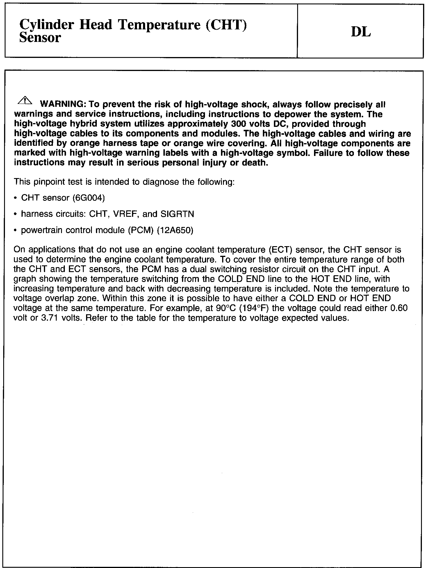 Cylinder Head Temperature Sensor Expected Values (Continued):