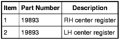 2. Detach the RH and LH center register clips and remove the RH and LH center registers.