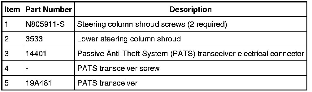 4. NOTE: Replacement of the PATS transceiver does not require the PATS keys to be programmed into the Instrument Cluster (IC) again.