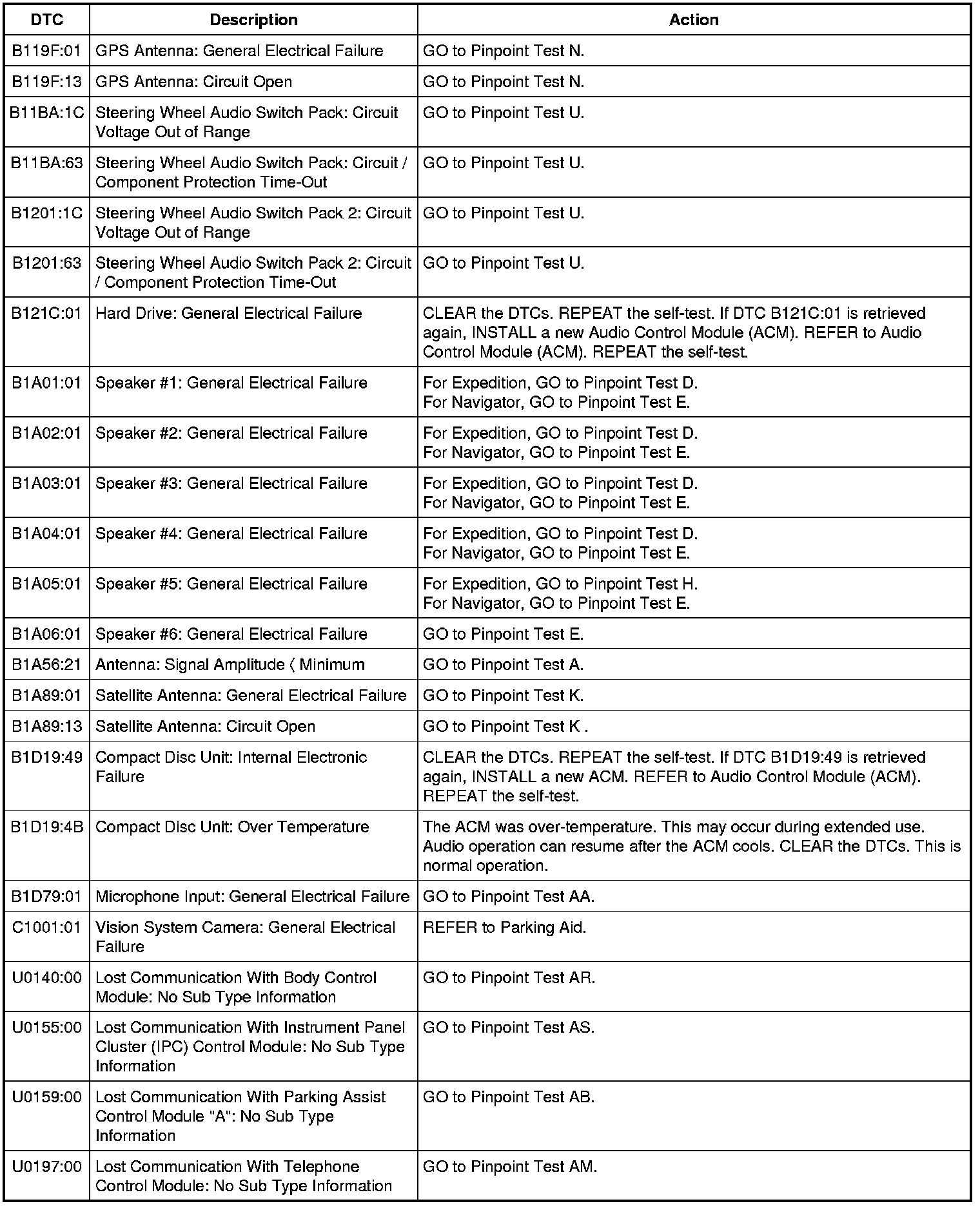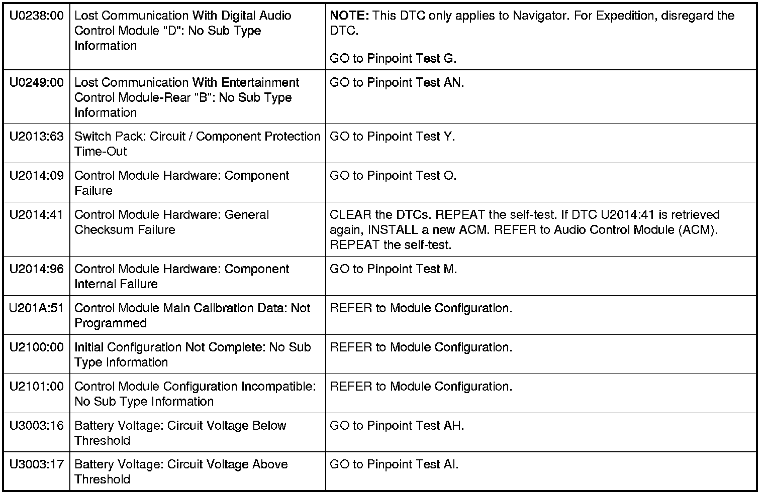 Audio Control Module (ACM) - With Navigation DTC Chart