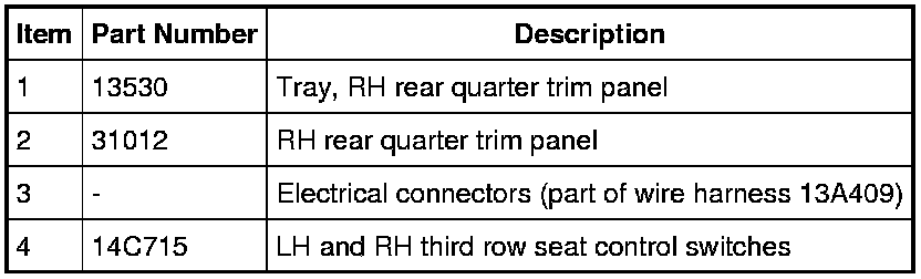 1. Release and remove the tray from the RH rear quarter trim panel.