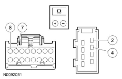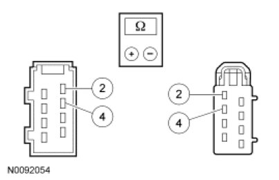 - NOTICE: The ohmmeter must be connected with the positive lead to pin 2 and the negative lead to pin 4 when measuring. Ohmmeter leads incorrectly connected will result in false readings and lead to incorrect identification of components that are not faulty