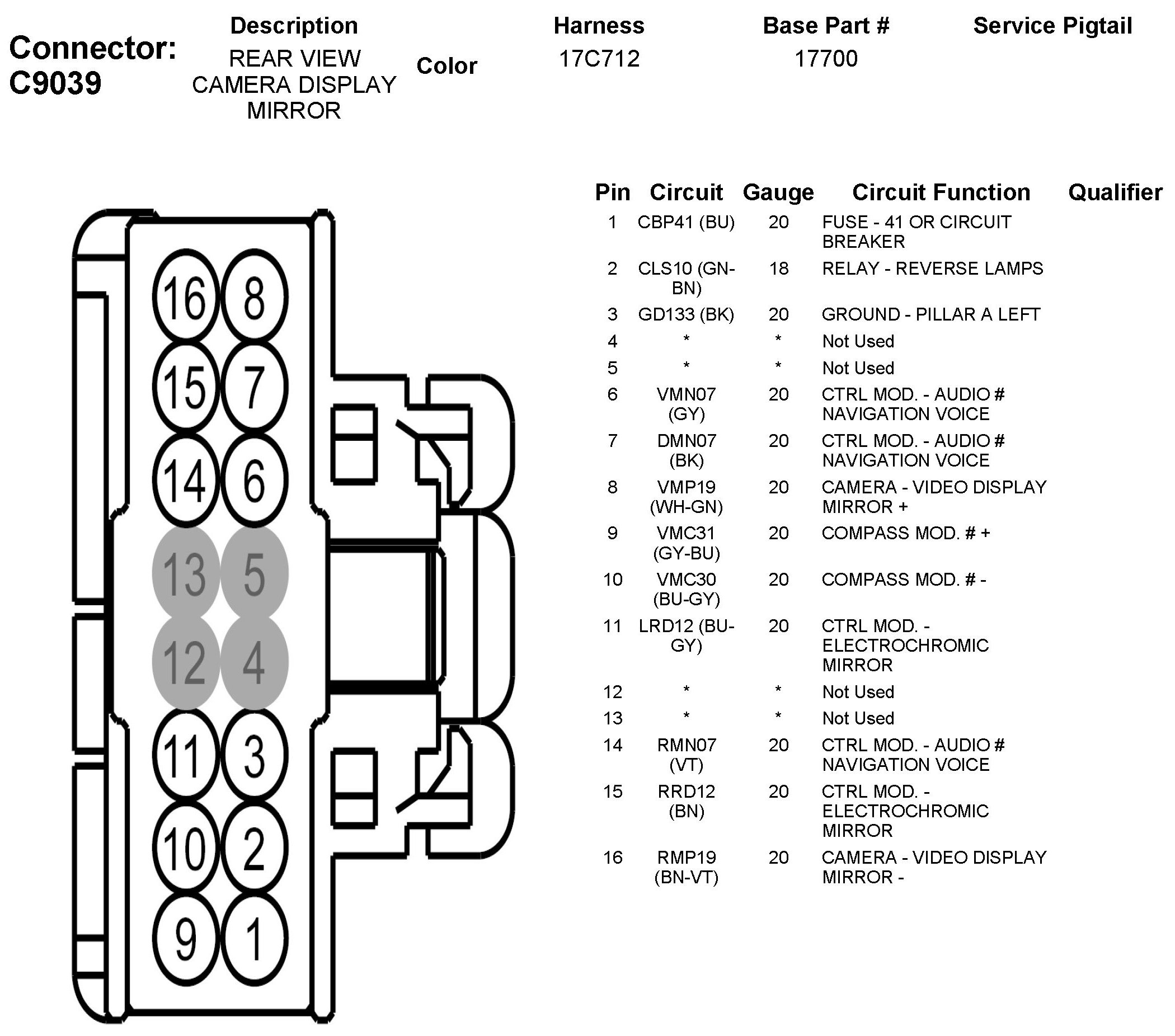 C9039 Rear View Camera Display Mirror