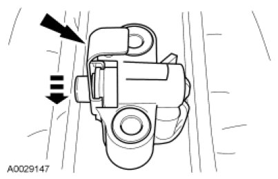 7. Install a retaining clip on the tensioner to hold the plunger in during installation.