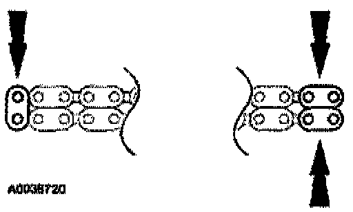 9. If the copper links are not visible, mark 2 links on one end and 1 link on the other end, and use as timing marks.