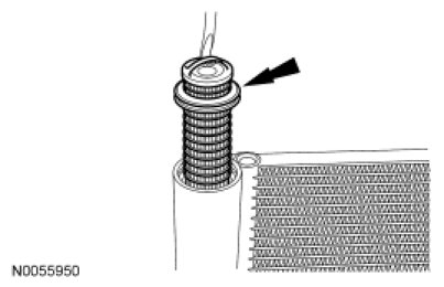 NOTE: Installation of a new receiver/drier desiccant cartridge is not required when repairing the A/C system, except when there is physical evidence of contamination from a failed A/C compressor or damage to the receiver/drier desiccant cartridge. Damage to the receiver/drier desiccant cartridge includes physical damage to the receiver/drier desiccant cartridge or moisture contamination. Moisture contamination results only from a complete loss of refrigerant and equalization of the refrigerant system pressure with atmospheric pressure for a period longer than one hour. If even a slight amount of positive refrigerant pressure is present in the system before repairs are carried out, the receiver/drier desiccant cartridge should not be replaced.