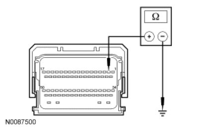 - Measure the resistance between ground and PCM C175B-2, circuit CH302 (WH/BN), harness side.