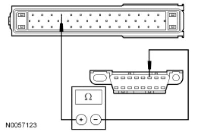 - Measure the resistance between the ABS module C135-13, circuit VDB05 (WH), harness side and the DLC C251-14, circuit VDB05 (WH), harness side.