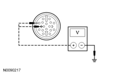 - Measure the voltage between the TCM, harness side and ground as follows: