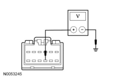 - Measure the voltage between the SDARS module C3290-9, circuit SBP03 (BU/RD), harness side and ground.