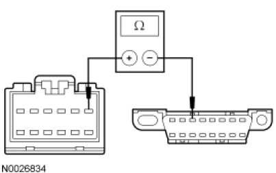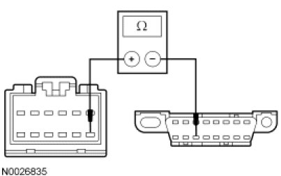 - Measure the resistance between the SDARS module C3290-7, circuit VDB07 (VT/OG), harness side and the DLC C251-11, circuit VDB07 (VT/OG), harness side.