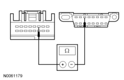 - Measure the resistance between the PAM C4226-11 (Expedition) or C4014a-11 (Navigator), circuit VDB07 (VT/OG), harness side and the DLC C251-11, circuit VDB07 (VT/OG), harness side.